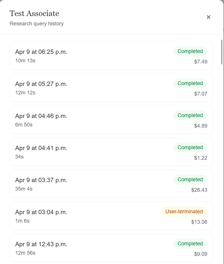 Every research session is saved locally — never synced to the cloud — so you can revisit prior work, mark favourites, and reopen files in one click.