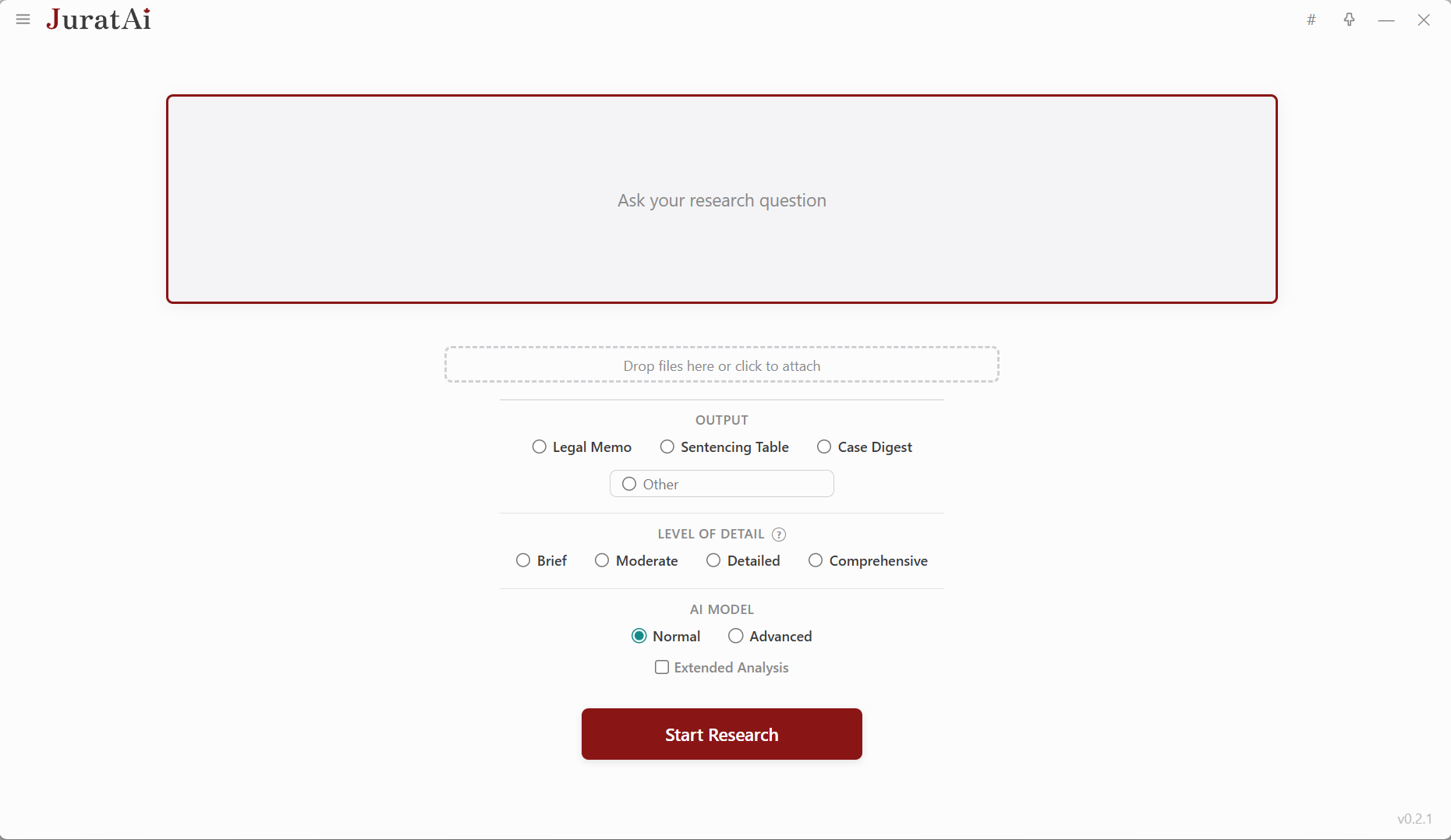 Type your research question, attach relevant documents, choose your output format, and pick the AI model that fits the matter at hand.