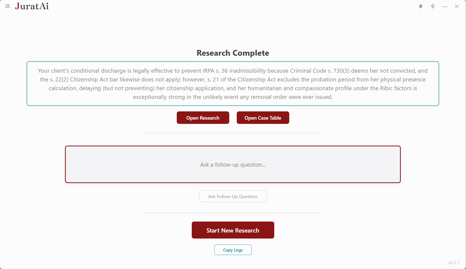 A live visualization shows every case being searched, screened, and analyzed as Jurat works its way through the issue in real time.